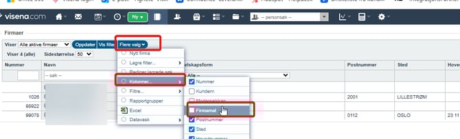 Hent frem ønsket visning med firmaene du vil oppdatere (se beskrivelse lenger ned).