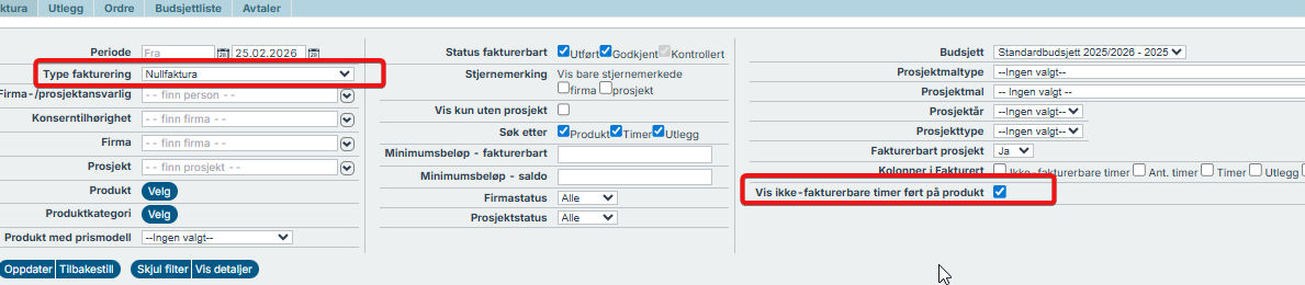 Nullfakturering - ikke-fakturerbare timer ført på produkt